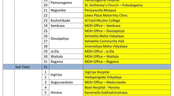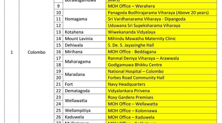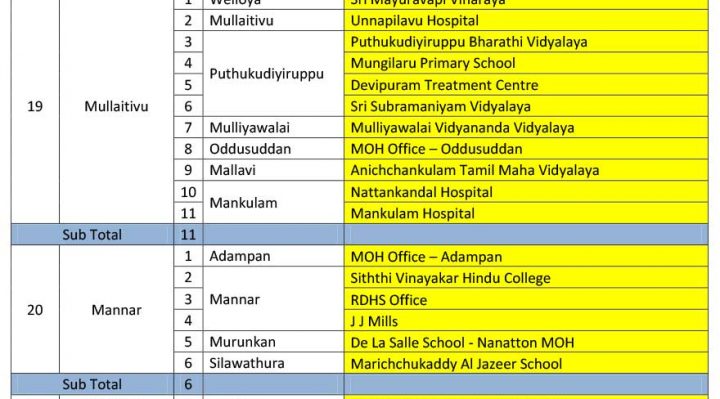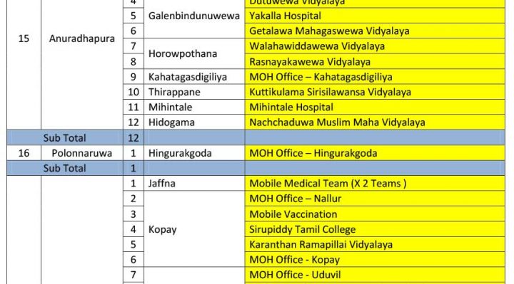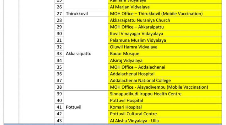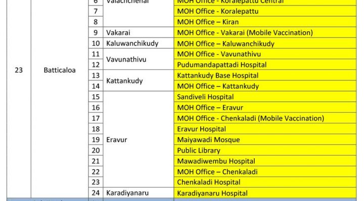 இன்று குறித்த தடுப்பூசிகள் செலுத்தப்படும் இடங்கள் தொடர்பான விபரங்கள் பின்வருமாறு