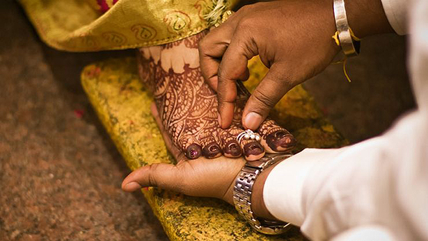பெண்ணின் கழுத்தில் மங்கல நாண் சூடிய கணவன் மணப்பெண்ணைப் பார்த்து, இனி நான் உனது உயிர்மூச்சாகவும் கல்லைப் போல மன உறுதியுடனும் இருந்து உன் வாழ்க்கைக்கு வழிகாட்டுவேன் என்பதை, வசிஷ்ட மகரிஷியின் சாட்சியாக உன் காலை அம்மி மீது வைத்து அதன் சாட்சியாக உன் காலில் மெட்டியைச் சூட்டுகின்றேன் என்று கூறுகின்றான்.