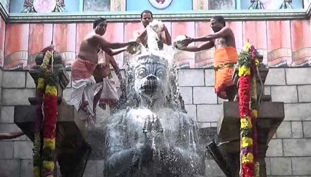 பின்னர் கழுத்தளவு நிறையும் அளவுக்கு வாசனை மலர்களால் புஷ்பாபிஷேகமும் நடைபெறும். – Source: Maalaimalar
