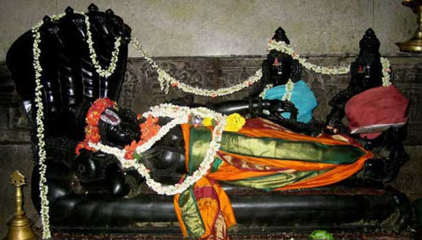 இக்குகையில் முக்கிய இடத்தில் பள்ளிகொண்ட பெருமாளும், பக்கங்களில் சங்கரநாராயணரும், வாமனரும் எழுந்தருளியிருக்கிறார்கள். இந்த தலத்திரத்தில் கார்கோடகன் தவமியற்றி பகவானை மகிழ்வித்து அவருக்கு படுக்கையானான். தினமும் கமலாலயத்திலிருந்து தீர்த்தம் கொணர்ந்து ஸ்ரீரங்கநாதருக்கு பூஜை செய்கிறான் என்பதற்கு சான்றாக இன்னும் மலைப் பாதையில் குளத்திலிருந்து கோவில்வரை பாம்பு சென்ற வழி காணப்படுகிறது என்பது ஐதீகம்.