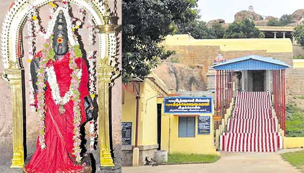 அடிவாரத்தில் இருந்து மலைக்கு செல்லும் பாதையில் 60 படிகளைக் கடந்த நிலையில் காணப்படுகிறது, சிவதருமபுரீசர் திருக்கோவில். இந்த ஆலயம் இறைவனின் பூமி, அந்தரம், சொர்க்கம் ஆகிய நிலைகளில் நடுநிலையான அந்தரம் என்று சொல்லப்படுகிறது. இத்தல மூர்த்தியான சிவதருமபுரீசர் லிங்க வடிவத்தில் உள்ளார். இவர் சுயம்புமூர்த்தியாவார். இந்த இறைவனுக்கு பின்புறத்தில் ‘தவளை படாதச்சுனை’ என்ற பெயரில் தீர்த்தம் ஒன்று உள்ளது. அதன் அருகே உட்சரிவான பாறையின் நெற்றிப்பரப்பில் மிகப்பெரிய தேன் கூடு வடிவில் சப்த கன்னியர்கள் வாழ்வதாக நம்பப்படுகிறது. ஆலயத்தில் கிழக்கு பார்த்தபடி மலைமூர்த்தி விநாயகர் உள்ளார். இவருக்கு பல பெயர்கள் உண்டு. அதில் முக்கியமானது ‘வீரகத்தி விநாயகர்’ என்பதாகும். இவரை வழிபடுபவர்களுக்கு வீரமும், பொறுமையும் கிடைக்கும் என்பது ஐதீகம். சிவதருமபுரீசர் கோவிலின் வடக்கே கிழக்கு நோக்கியபடி சிவகாமவல்லியம்மை தனிச் சன்னிதியில் எழுந்தருளியுள்ளார்.