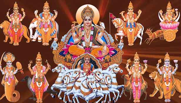 சூரியன்: காசியப முனிவரின் மகன். ஒளிப்பிழம்பானவர். நவக்கிரகங்களில் முதன்மை ஸ்தானம் பெற்றவர். சந்திரன், செவ்வாய், குரு ஆகியவை நட்பு கிரகங்கள். புதன் சமமான கிரகம், சுக்ரன், சனி, ராகு-கேது ஆகியவை பகை கிரகமாகும். அதி தேவதை அக்னி, உச்ச ராசி மேஷம், நீச்ச ராசி துலாம். சூரியனுக்கான நட்சத்திரங்கள் உத்திரம், கிருத்திகை, உத்திராடம். தசாபுத்தி காலம் 6 ஆண்டுகள். நைவேத்தியம் சர்க்கரை பொங்கல்.