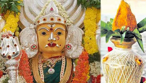 பின்பு உங்கள் பூஜையறையில் ஒரு மரப்பலகை அல்லது பீடத்தை வைத்து, அதில் தலைவாழை இலையை போட்டு, அதில் பச்சரிசி ஒரு ஆழாக்கு அளவு பரப்பி, அதில் இந்த கலச சொம்பை வைக்க வேண்டும். இந்த சொம்பிற்குள் வெற்றிலைகள் அல்லது மாவிலைகளை செங்குத்தாக வைத்து, அதற்கு நடுவில் ஒரு வாழைப்பூவை நுனி பகுதி மேல்நோக்கி இருக்குமாறு வைக்க வேண்டும்.
